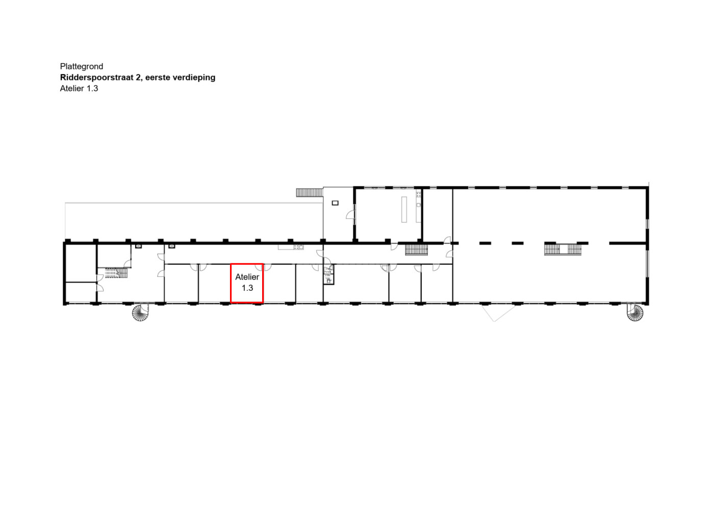 | Accommodatie | Ridderspoorstraat 2-5, atelier 1.3 |